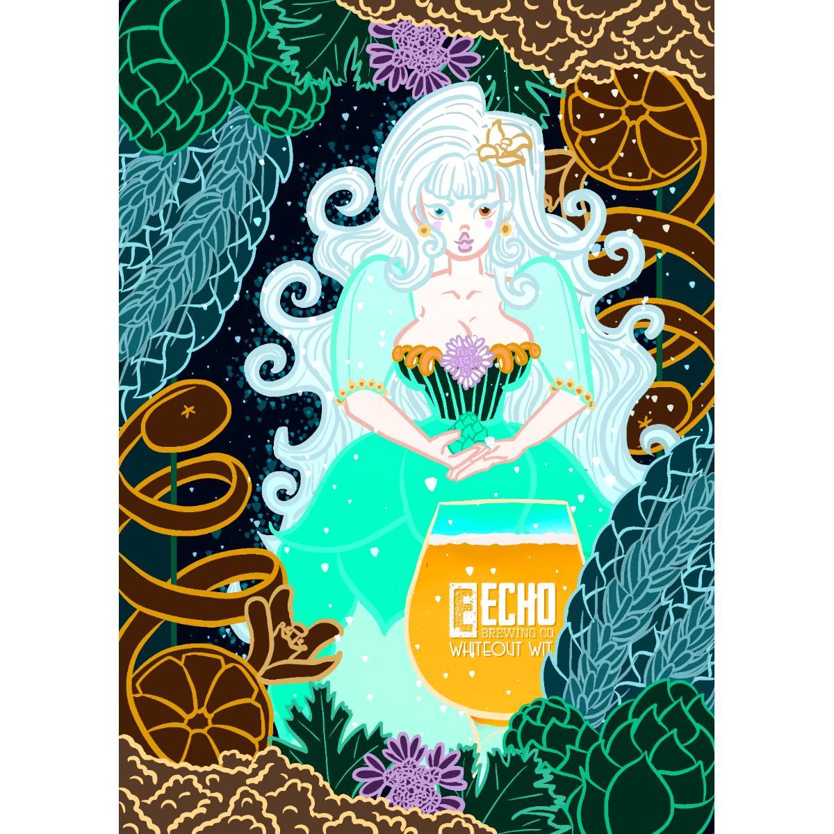 Echo Brewing Whiteout Wit. Award winning Belgium-style beer spiced with coriander and bitter and sweet orange peel.